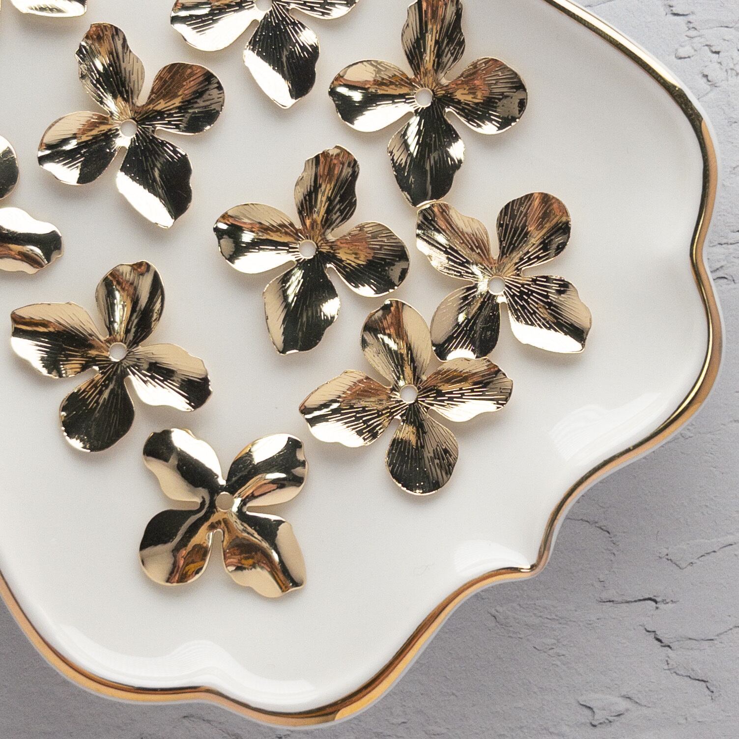 ※こちらの商品は2〜5枚目の写真のように穴の位置のズレ、マット加工のハゲ、メッキの浮き、花びらに針で刺したようなくぼみが見られるものの詰め合わせとなっております。