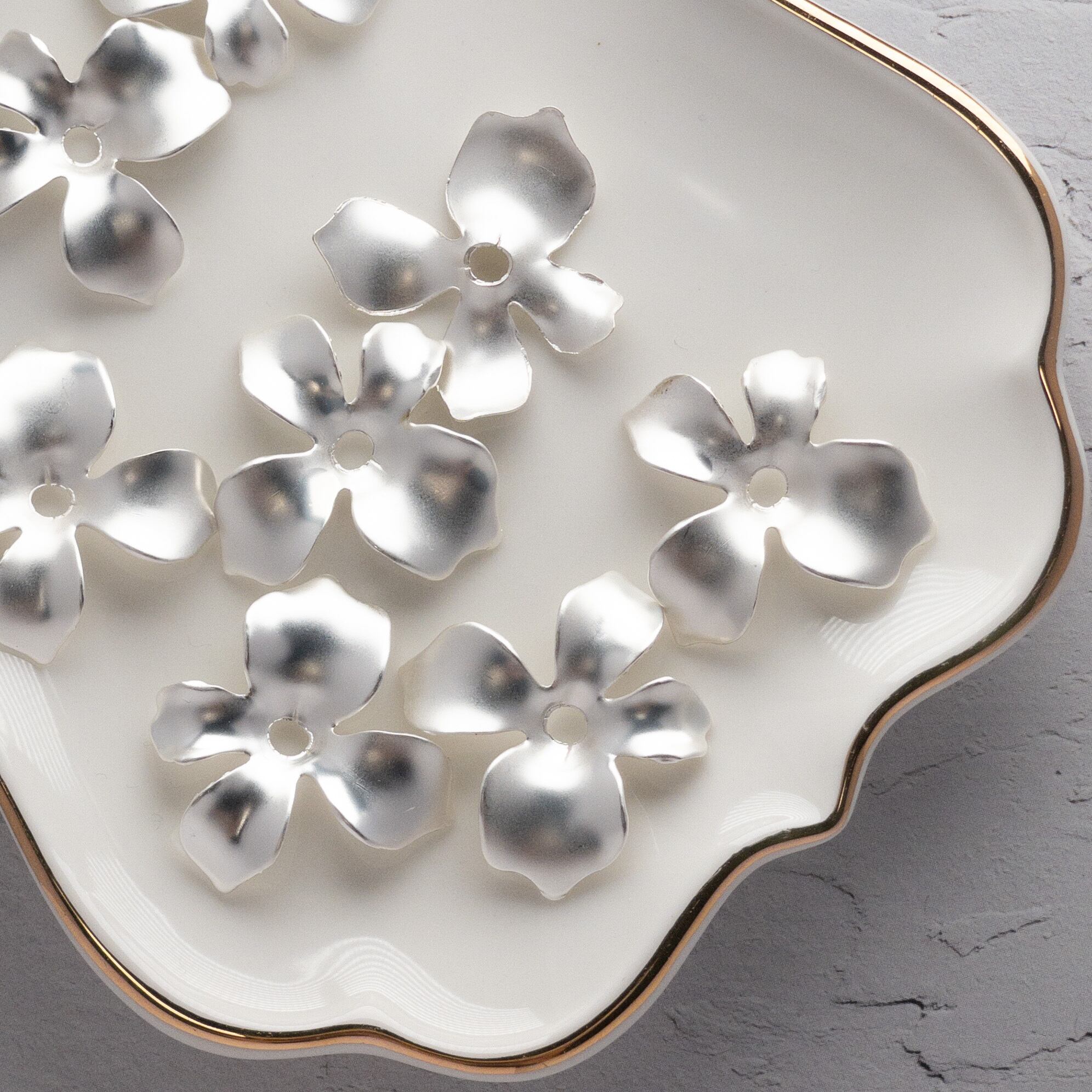 ※こちらの商品は2〜5枚目の写真のように穴の位置のズレ、マット加工のハゲ、メッキの浮き、花びらに針で刺したようなくぼみが見られるものの詰め合わせとなっております。